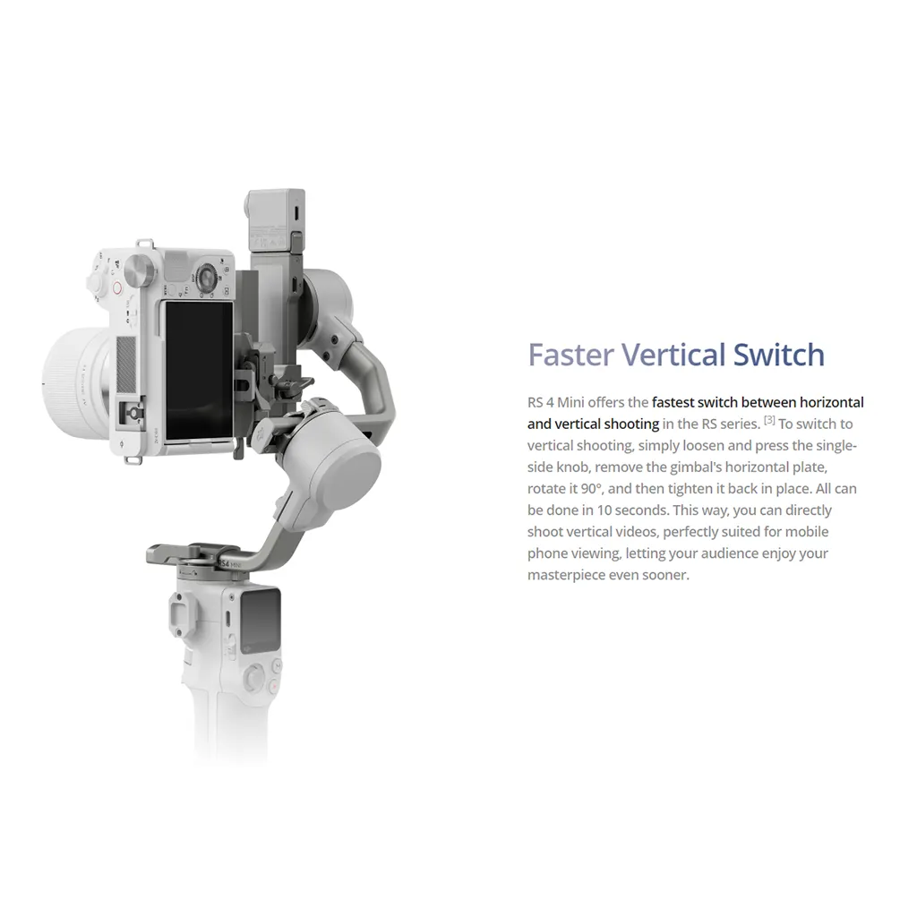 This combo includes essential accessories such as a tripod base, quick-release plate, camera control cables, and other mounting tools that enhance stability, setup speed, and creative flexibility. With advanced ActiveTrack, creative shooting modes, and ergonomic handling, the RS4 Mini Combo is a versatile solution for photographers and videographers who want professional-level results with a portable rig.