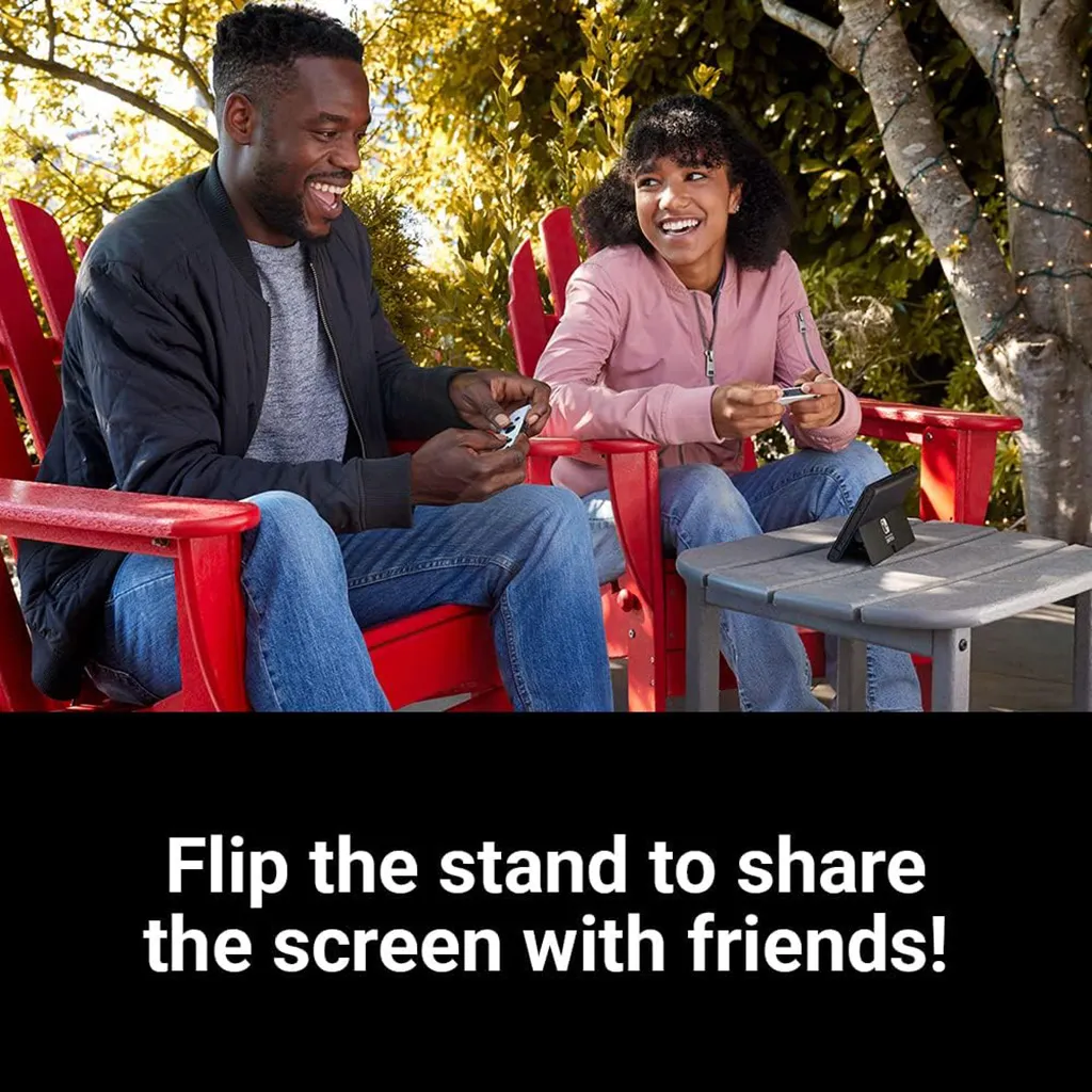 Designed for flexibility, the console seamlessly switches between handheld, tabletop, and TV modes, allowing you to play at home or on the go. Enhanced onboard speakers provide clearer, more immersive sound in portable modes, while the wide adjustable stand offers better stability for tabletop gaming.